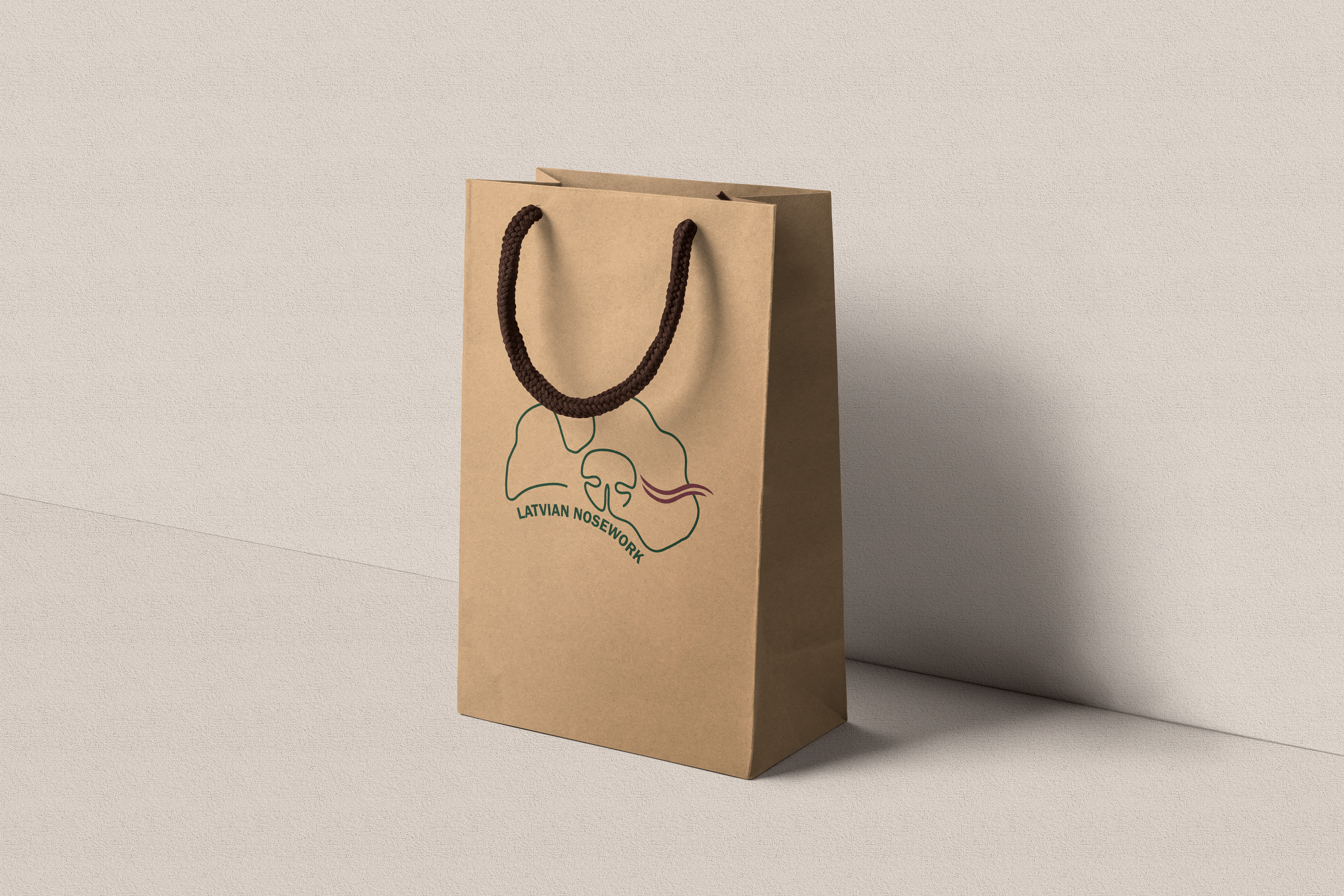 The aim of this logo was to create a clear and recognizable identity that stands out from other nosework organizations while instantly communicating its Latvian origin. Instead of using generic dog imagery, the focus was placed on simplicity, meaning, and functionality. To highlight Latvia and a sense of patriotism, the Latvian flag was abstracted into a flowing, scent-like line - representing both national identity and the essence of nosework. The outline of Latvia reinforces the geographic connection, resulting in a logo that clearly communicates “Latvian Nosework” while remaining distinctive and easy to use across formats.